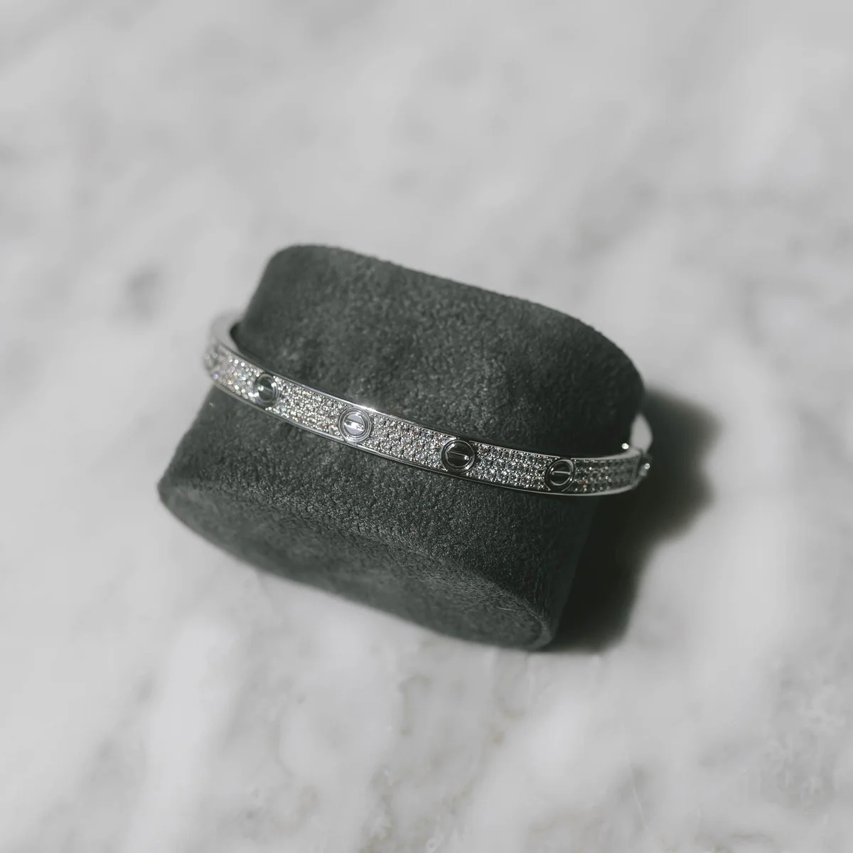 Keep your jewelry in a soft pouch when not in use and wipe it gently with a microfiber cloth. Avoid exposure to water, perfume, or harsh chemicals to preserve its brilliance and polish.